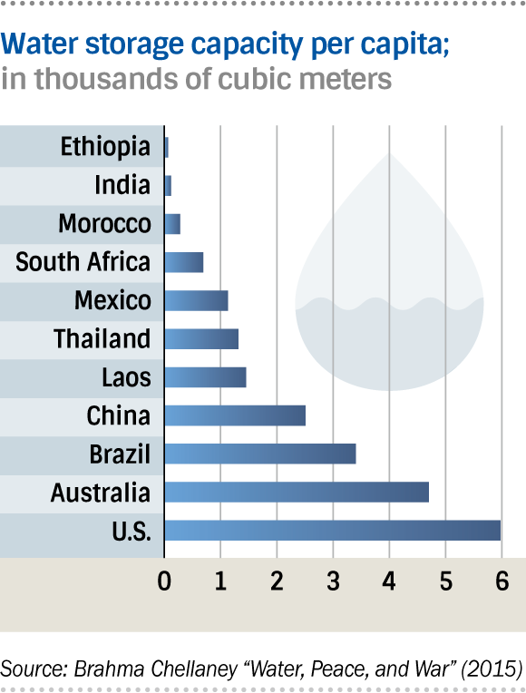 Asian countries must enhance their water infrastructure to increase distribution efficiency and mitigate imbalances in water availability. Storing water in the wet season for release in the dry is one way to ease seasonal imbalance. But most nations in Asia, with the exception of dam-dotted China, have a relatively low per capita water storage capacity by global standards.