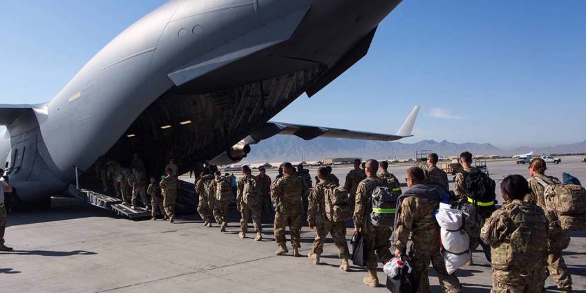 BAGRAM AIR BASE, AFGHANISTAN – MAY 11: U.S. Army soldiers walk to their C-17 cargo plane for departure May 11, 2013 at Bagram Air Base, Afghanistan. U.S. soldiers and marines are part of the NATO troop withdrawal from Afghanistan, to be completed by the end of 2014. (Photo by Robert Nickelsberg/Getty Images)