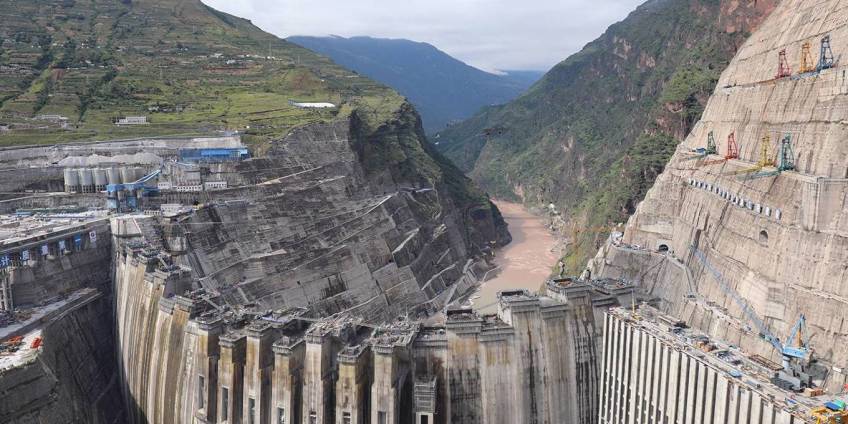 ZHAOTONG, CHINA – OCTOBER 06: Aerial view of the construction site of the Baihetan hydropower station on October 6, 2020 in Zhaotong, Yunnan Province of China. Baihetan hydropower station is on the Jinsha River, the upper section of the Yangtze, straddling Sichuan and Yunnan provinces. With an installed capacity of 16 million kilowatts, the dam is expected to generate more than 60 billion kW hours of electricity per year. Baihetan will be the world’s second-largest hydropower project after the Three Gorges project. (Photo by VCG/VCG via Getty Images)
